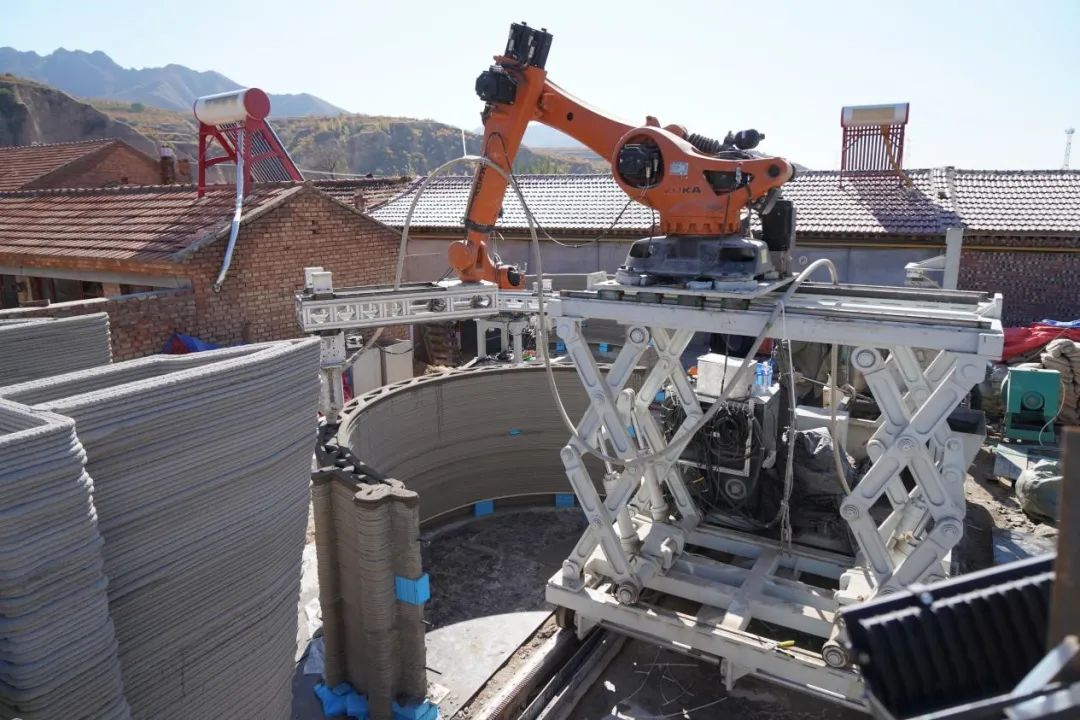 在河北农房打印的过程中,团队也遇到了许多在设计研发时从未想过的问题。当团队将三台机械臂从无锡运抵河北时,因为乡村道路细窄,设备难以在小院里安装。经过实地勘测,采用拆分重装形式进场,工程才得以如期开展。