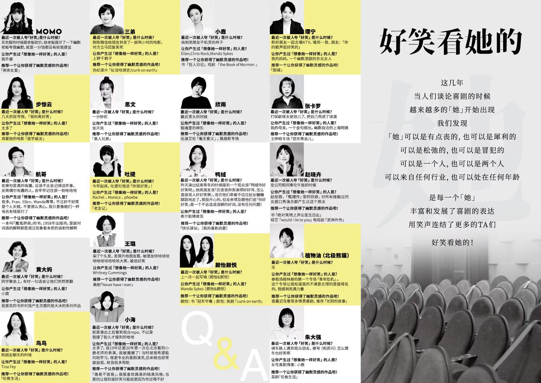 笑果文化在3月8日发起的一个关于“幽默”的问答调查中,20位女性脱口秀演员给出了各色各样有趣的回答,发现了更多“她们”有趣的一面。