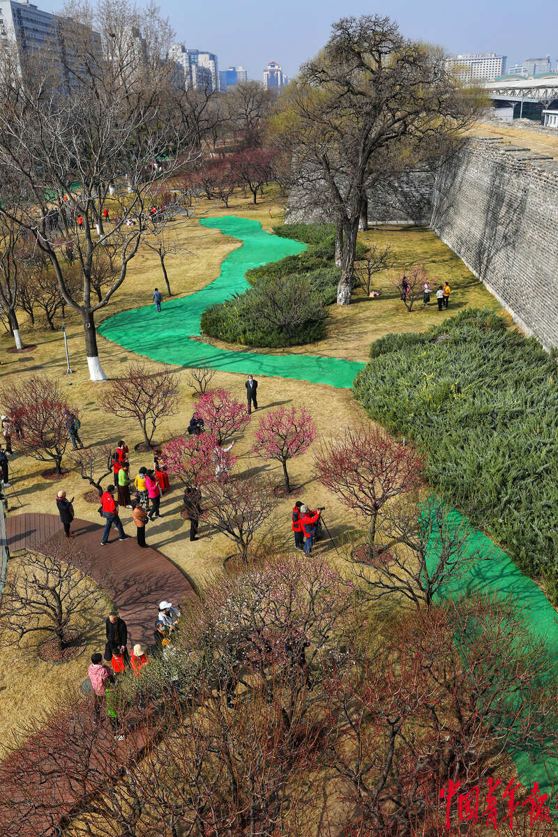 3月10日,北京明城墙遗址公园,陆续开放的梅花吸引了不少游人前来观赏。中青报·中青网记者 李建泉/摄