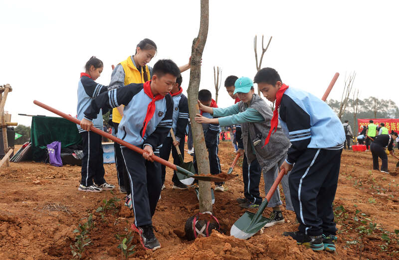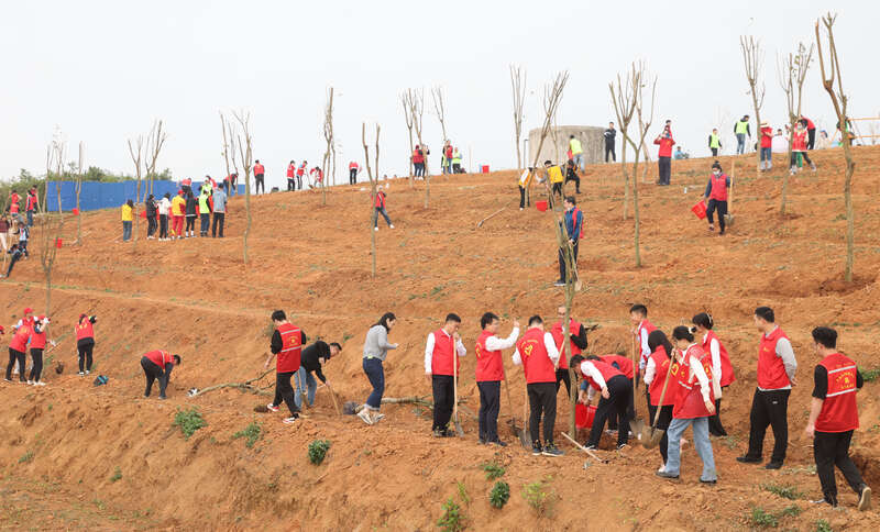 当天,来自区直、中直驻桂机关(企事业)单位团组织,区直院校团委的青年五四奖章获得者代表,少先队员、青年志愿者代表,生态环保领域优秀青年代表,青年企业家代表,青年社会组织代表,广西青年联合会代表,新兴领域青年优秀代表等340多名青年志愿者来到南宁树木园鹿呦山种植宫粉紫荆、广州樱300多株,共同打造“生态茶园+花海景观”。