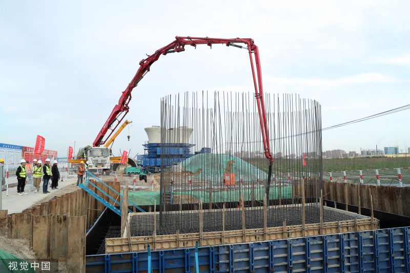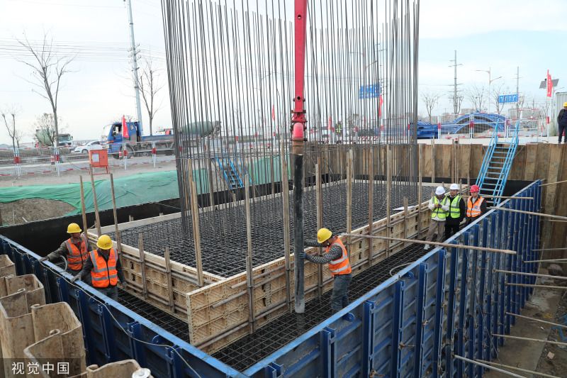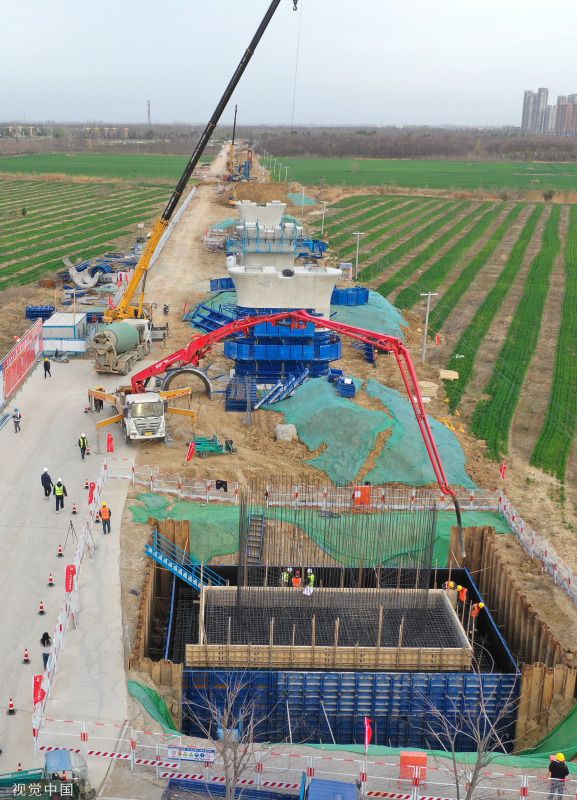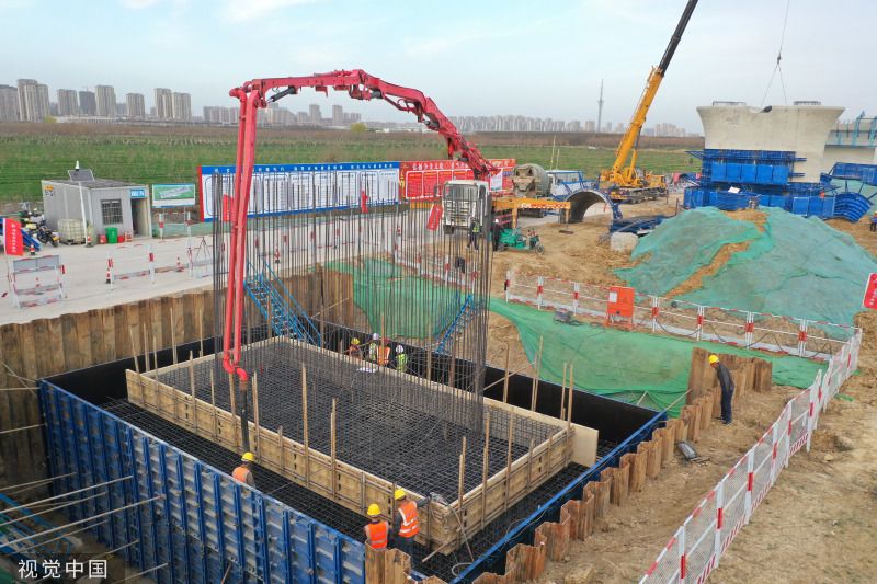 2023年3月12日,安徽省亳州市,蒙城县境内阜淮铁路2标项目——跨蒙城县望月路连续梁主墩承台顺利浇筑,这是阜淮铁路全线首座连续梁主墩承台,标志着阜淮铁路跨路、跨河特殊结构物已正式进入可视化阶段,为下一道工序的施工奠定了坚实的基础。