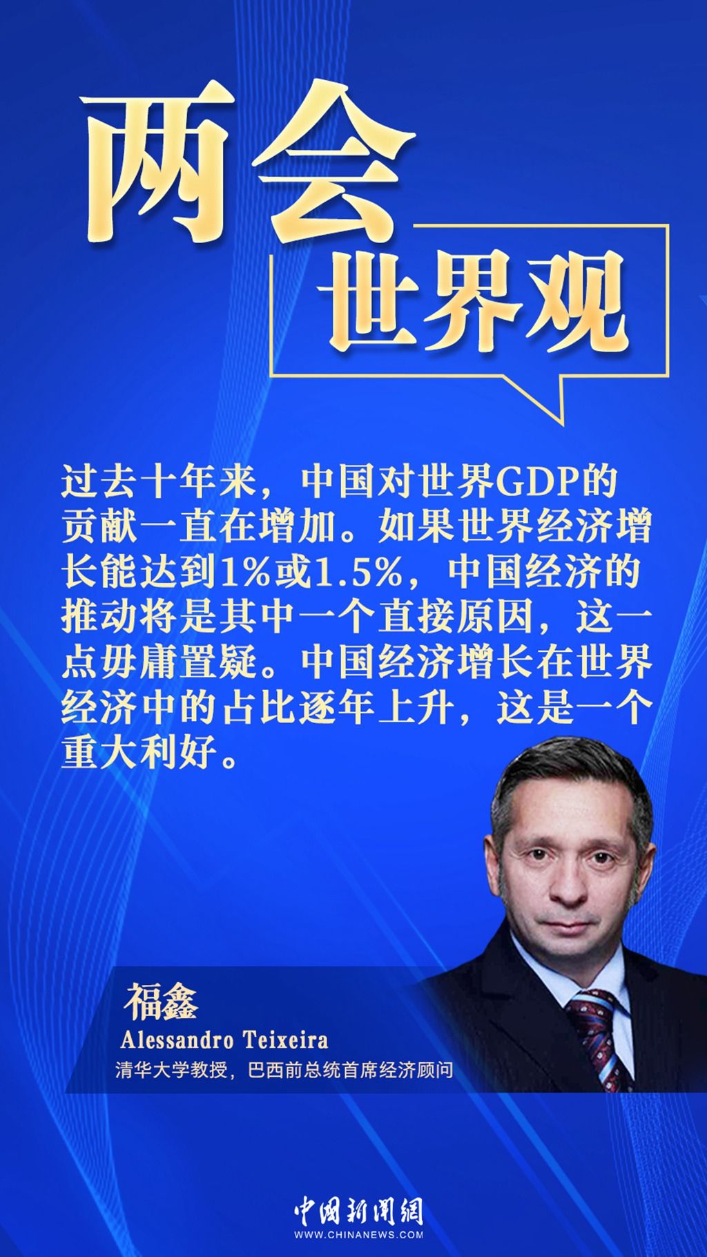 中新网3月13日电 (吴辛茹)2023年全国两会受到多国关注。清华大学教授、巴西前总统首席经济顾问福鑫(Alessandro Teixeira)在接受中新网专访时指出,中国经济的发展是提振世界经济的一大直接原因,这一点毋庸置疑。中国经济在世界经济中的占比逐年上升,这是一个重大利好。