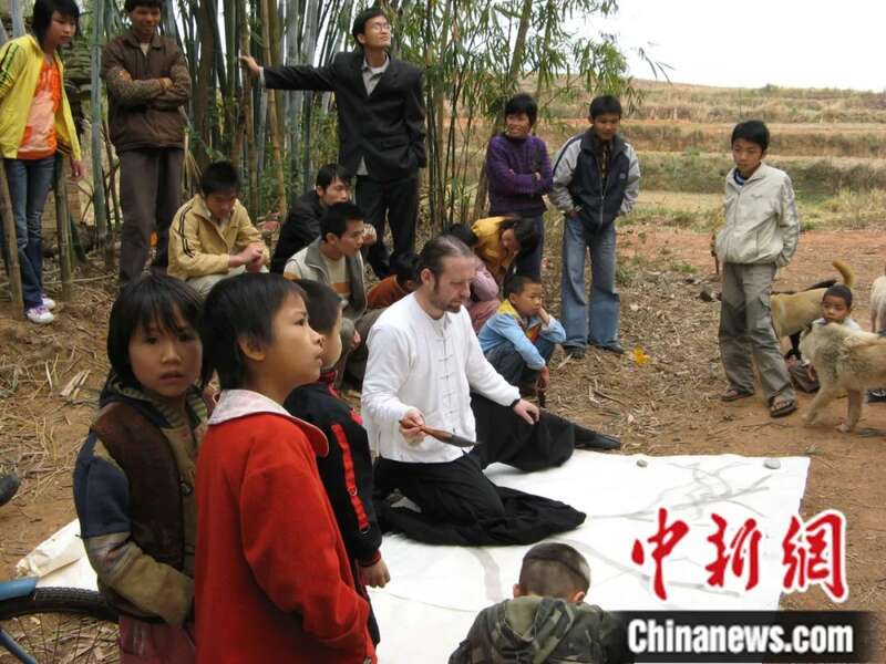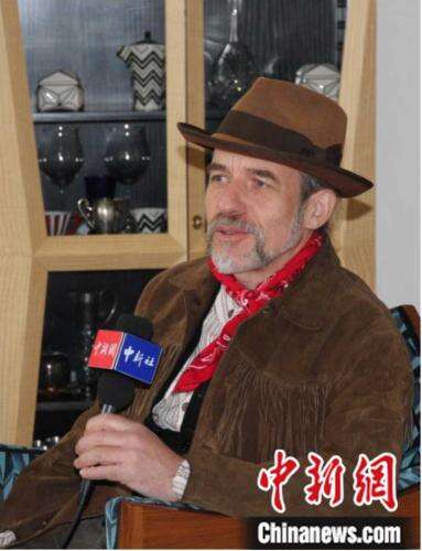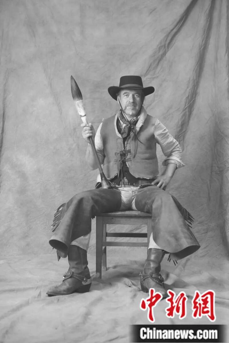 头戴宽檐帽,身着流苏皮衣,脚踩牛仔靴,捷克著名当代艺术家伊瑞(Jiri Straka)俨然一位西部牛仔,但见他娴熟地使用毛笔与流苏在宣纸上挥洒水墨,“水墨牛仔”就此诞生。