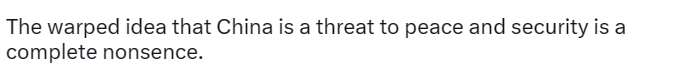 网友@Can’t Stand Hypocrisy表示,认为中国是和平与安全威胁的扭曲想法完全是无稽之谈。