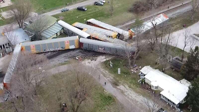 一列火车在美国肯塔基州格伦代尔脱轨(航拍图)
