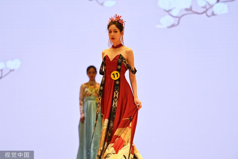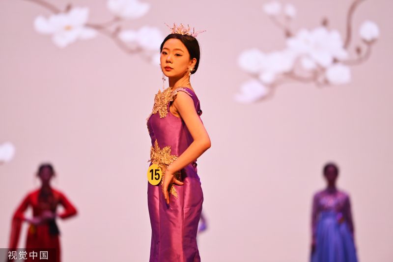 2023年3月17日,2023年兰州市中等职业学校技能大赛模特表演比赛在甘肃兰州现代职业学院举行。比赛旨在为中等职业教育模特技能人才培养搭建专业的职业发展通道,建设与国内外模特市场需求有效对接的模特人才培养模式。赛事分为泳装、传统文化礼服展示等形式。 中新社记者 李亚龙 摄
