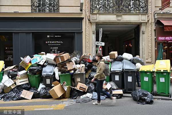 当地时间2023年3月17日,法国巴黎,市中心无人清理的垃圾。巴黎市政府称,巴黎待清理的垃圾当天已达万吨。成堆的垃圾几乎随处可见。 中新社记者 李洋 摄收起