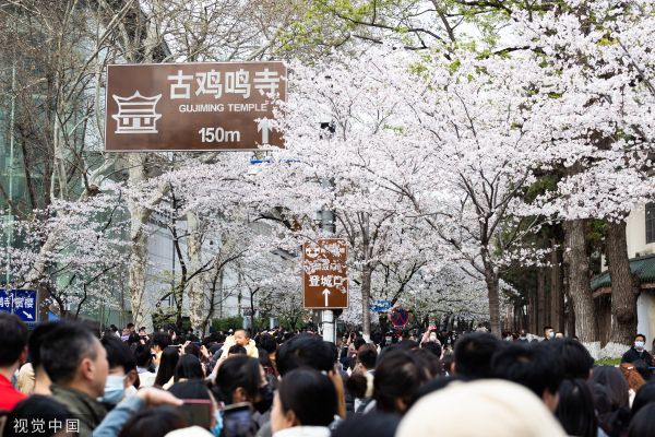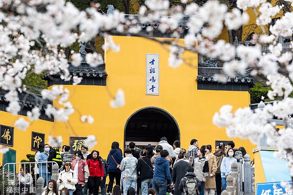 鸡鸣寺路樱花盛开 观赏游人络绎不绝