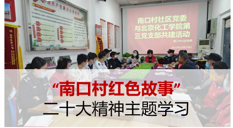 化学工程学院北区本科生第三党支部以“赓续红色革命精神 科技赋能乡村振兴”为主题,与南口村社区党委开展了形式多样、内容丰富的共建活动。学生党支部依托自身“全国党建工作样板支部”培育创建单位的经验优势,围绕昌平区南口村社区党委发展过程中的难点和痛点,深入学习宣传贯彻党的二十大精神,弘扬红色文化,发挥专业优势,用实际行动投入到科技助力乡村振兴的伟大实践中。