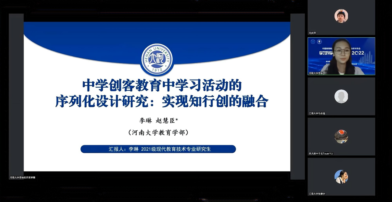 在中国高等教育学会学习科学分会2021学术年会中,李琳做了题为“中学创客教育中学习活动的序列化设计研究”的学术分享。同时,在赵慧臣教授的推荐下,李琳还以核心成员身份参与豫教版义务教育阶段 《信息科技》教材编写工作,并参加了2022年北京大学“教育技术前沿”暑期学校,与全国各地的师生做学术交流与互动。