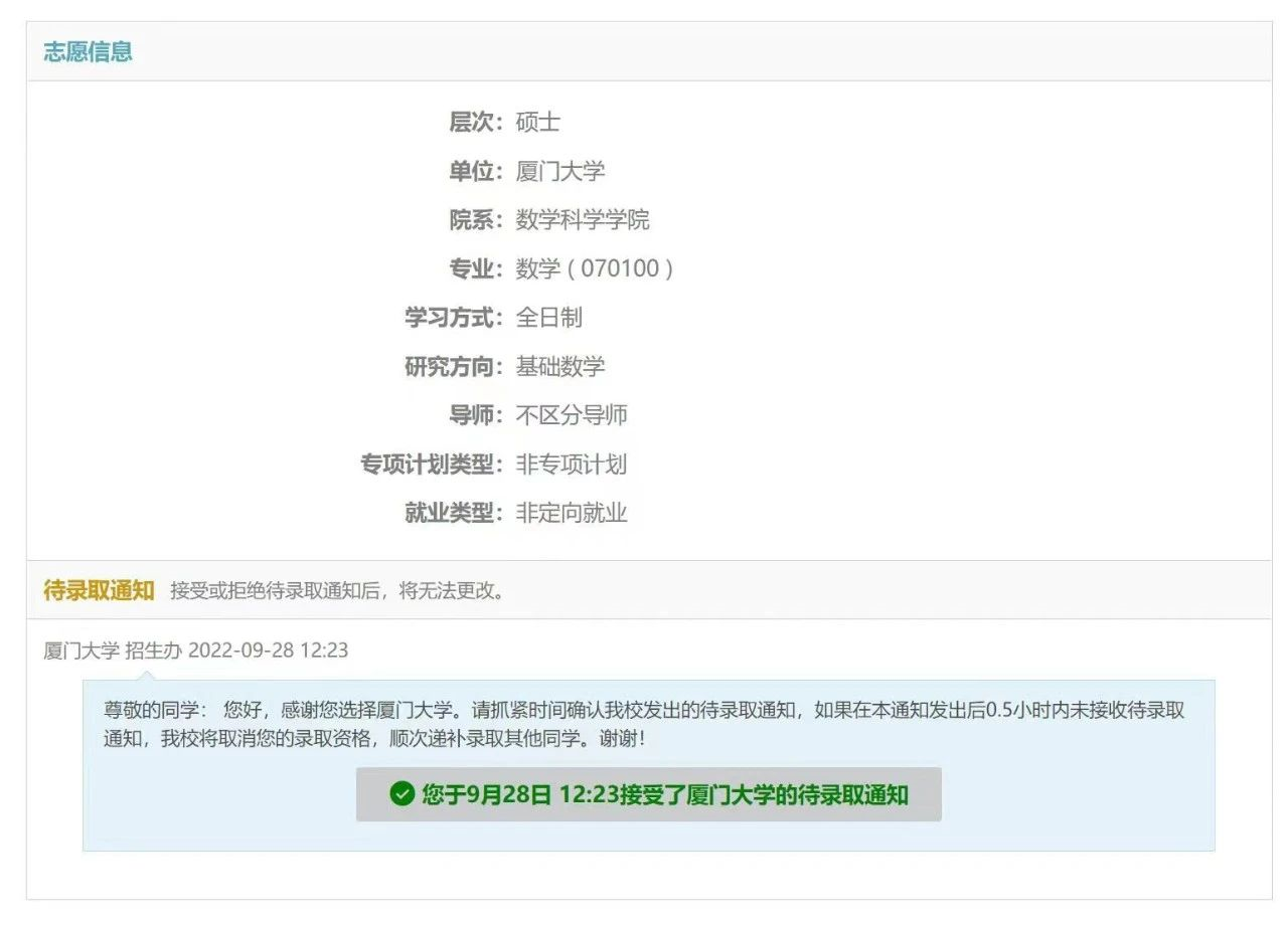 厦门大学待录取通知