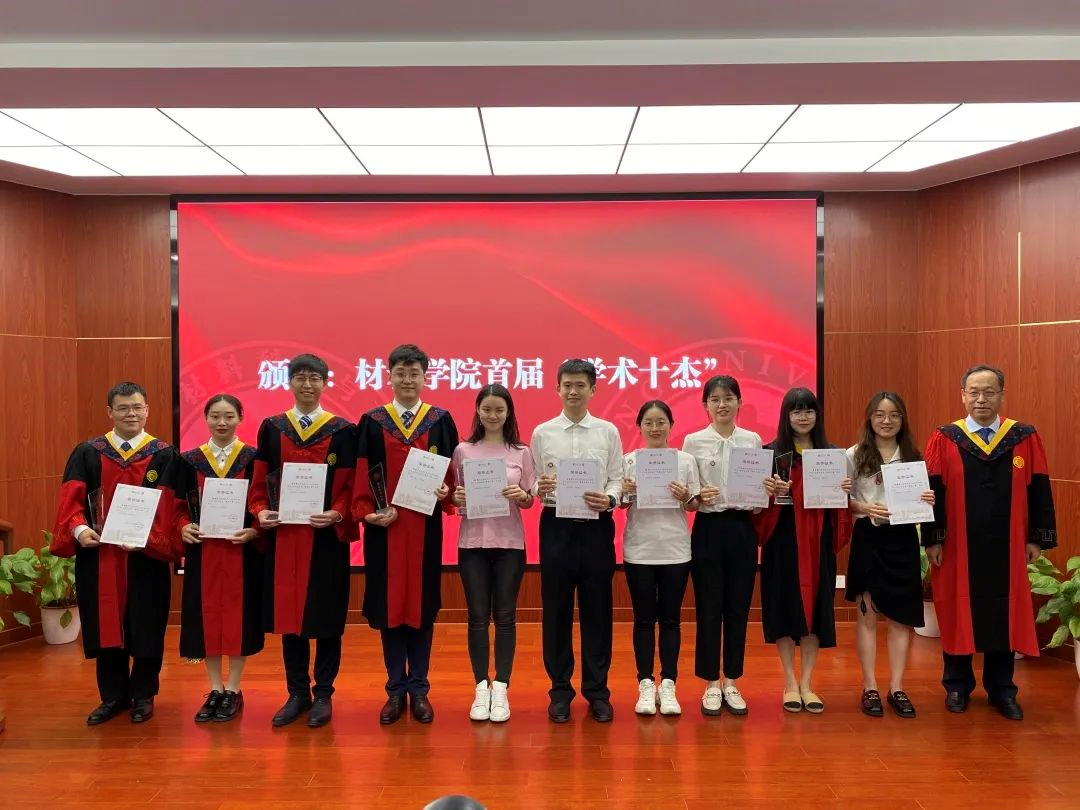 曾怡(右五)在材料学院首届“学术十杰”颁奖典礼上