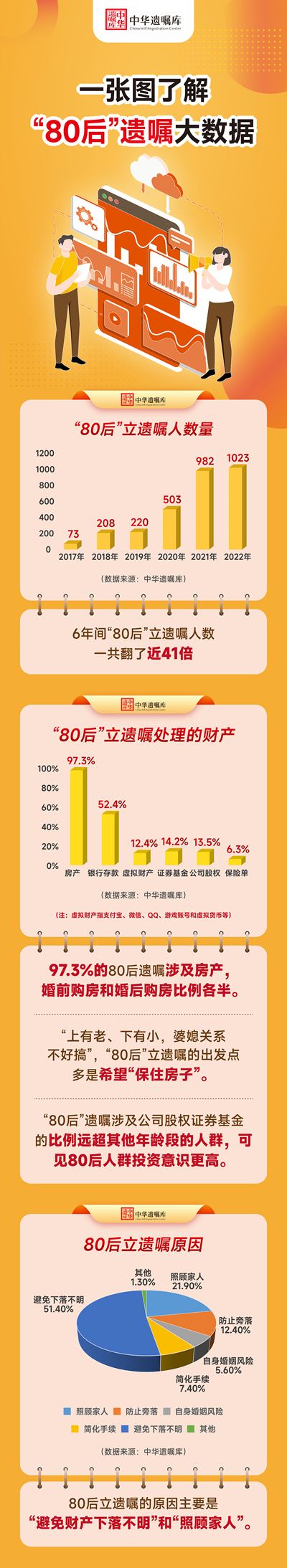 《2022中华遗嘱库白皮书》显示,截至2022年12月31日,“80后”在中华遗嘱库订立遗嘱一共有3009人。通过分析发现,“80后”订立遗嘱的人大部分属于家庭内部无纠纷且本人身体健康,订立遗嘱更是希望“未雨绸缪”。