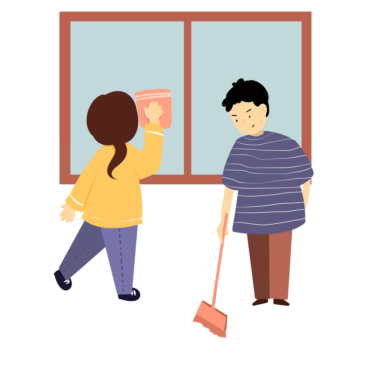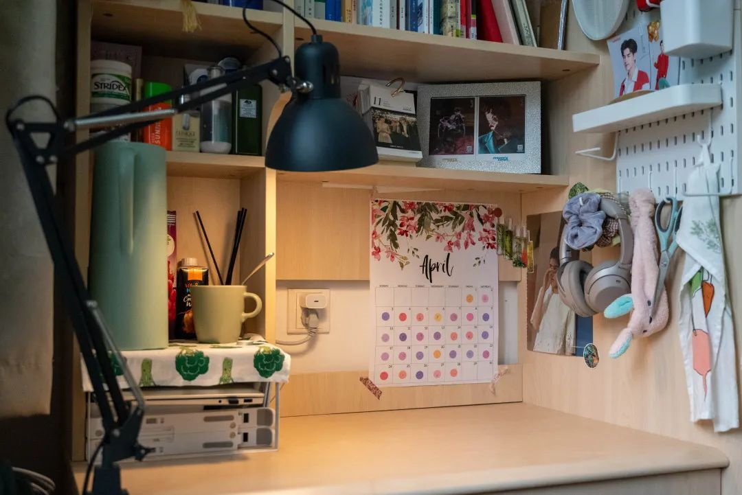 虽然宿舍没有特意安排每天的值日生,但是每个人都保持着良好的卫生习惯。在视线所及的范围内,她们会随时自觉打扫;对于床底、阳台等不常利用的区域,她们则会在周末集体行动、分工协作,形成了“个人随时一小扫,宿舍定期一大扫”的规律。