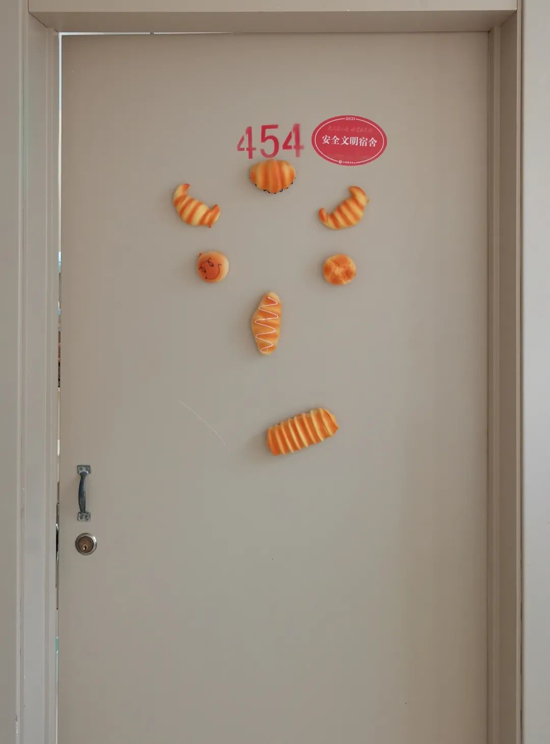 在一次学院活动中,她们每人都得到了一个可爱的奖品——解压面包玩具。大家灵机一动,把自己的面包都贴到了挂有对联的门上、拼出了一个人脸,并把它命名为“歪嘴邪神”;除了可爱的小装饰之外,宿舍里总有温馨的小香囊挂在各处——这是由刘慧莹亲手制作的心意,被每个人珍藏。