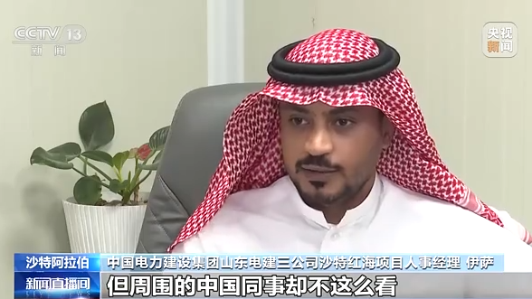中国电力建设集团山东电建三公司沙特红海项目人事经理 伊萨:有的时候我都觉得有些困难根本没有办法克服,但周围的中国同事却不这么看。他们能花上整整一天甚至两天的时间去钻研、充分讨论,不断沟通最新的情况进展,最后一点一点去战胜困难。这是我在其他地方从来都没有见过的,也是我在中国公司学到的最重要的东西。