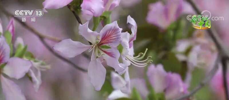 现在我们来到广东广州市赤坭镇蓝田村。眼下,这里的1000多亩宫粉紫荆正值盛花期,紫中透粉、粉中透白,一片花的海洋。宫粉紫荆别名羊蹄甲,花期为冬春季节,三月最盛。绽放的宫粉紫荆繁星点点般挂满枝头,满树烂漫。走在花间,宛如置身童话世界。