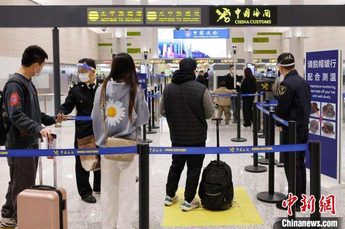 虹桥海关工作人员在对出境旅客进行信息核查。 殷立勤 摄