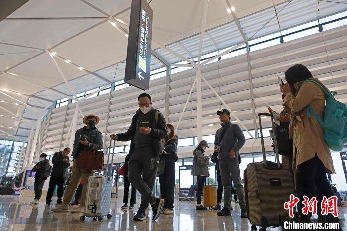 旅客在虹桥机场T1航站楼内等待过安检。 殷立勤 摄