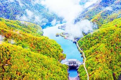 群山环绕的汉中石门水库景区 王凤祥摄