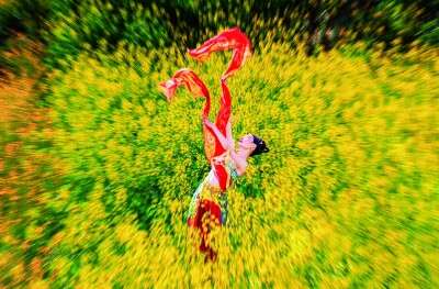 汉中112万亩油菜花海灿烂如锦,舞蹈爱好者霓裳羽衣舞花香。陈健摄