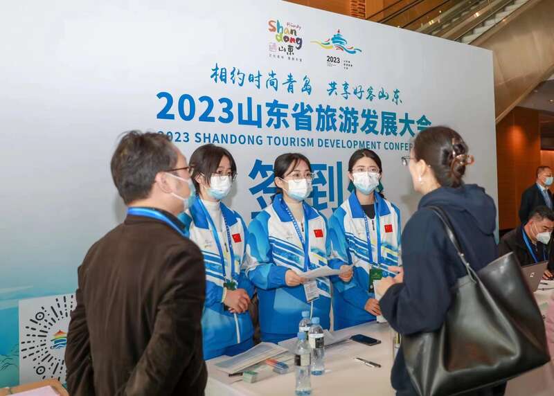 中国青年报客户端济南3月27日电(中青报·中青网记者 邢婷)3月26日至27日,2023山东省旅游发展大会在青岛成功举办。团青岛市委、执委会志愿者组根据本次大会需求,精准对接多所驻青和市属高校,共招募300余名青年志愿者,在13大类服务岗位、60多个服务点位,累计服务时长18000小时,以饱满的热情和昂扬的风貌投入到大会各项服务工作中,圆满完成各项志愿服务任务。