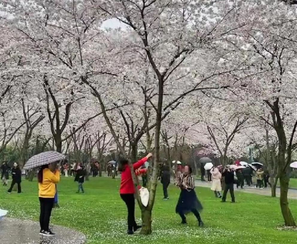 事实上,这些行为不仅引发了游客的反感和谴责,而且引起了公园管理方的关注。 相关工作人员在接受记者采访时表示,已加强对樱花林的巡逻,发现类似行为他们会劝阻。
