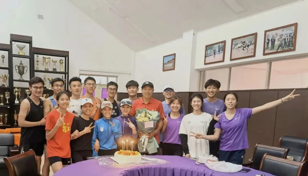 夏雨雨、牛丽华和队友们为教练庆祝生日