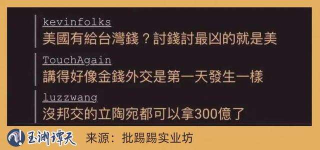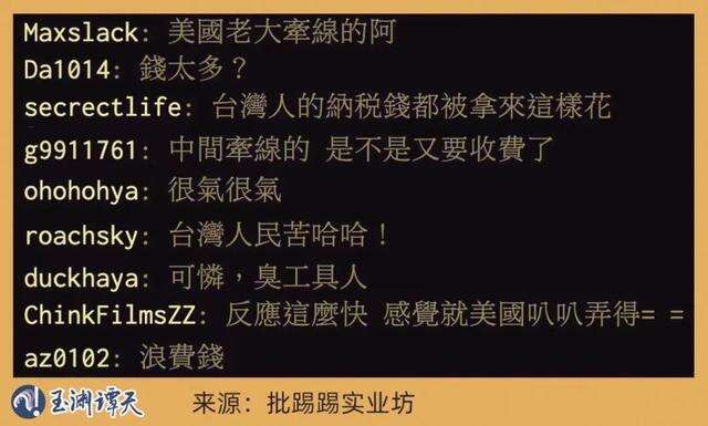 很多台湾地区网民其实看得很明白,他们在“批踢踢实业坊”中指出,台湾当局这样做,就是因为有美国在牵线。