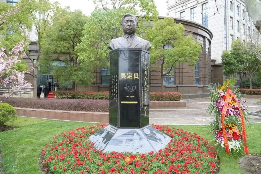 花荣树茂间,吴定良先生雕像屹然矗立,雕塑家吴进贝耗时一年创作完成。期间吴进贝阅读传记资料,还原容貌神态,凸显这位人类学家“坚毅担当、为国为民”的精神内核,并在雕像底座以线雕刻画吴定良一生的重要场景。