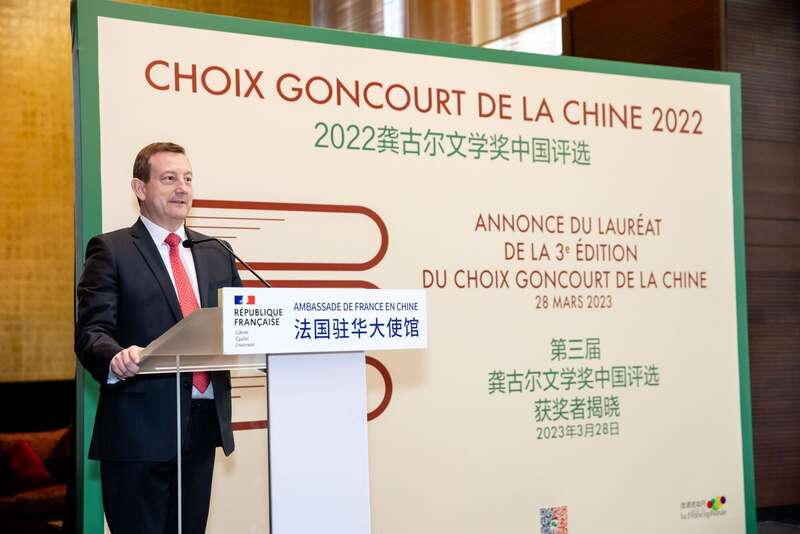 中国青年报客户端讯(中青报·中青网见习记者 国新冠)3月28日下午,第三届龚古尔文学奖中国评选颁奖典礼在法国驻华大使官邸举办。法国驻华大使白玉堂宣布今年的获奖作品是法国作家布里吉特·吉罗的小说《活得太快》。去年11月,这一作品已摘得2022年度龚古尔文学奖桂冠。