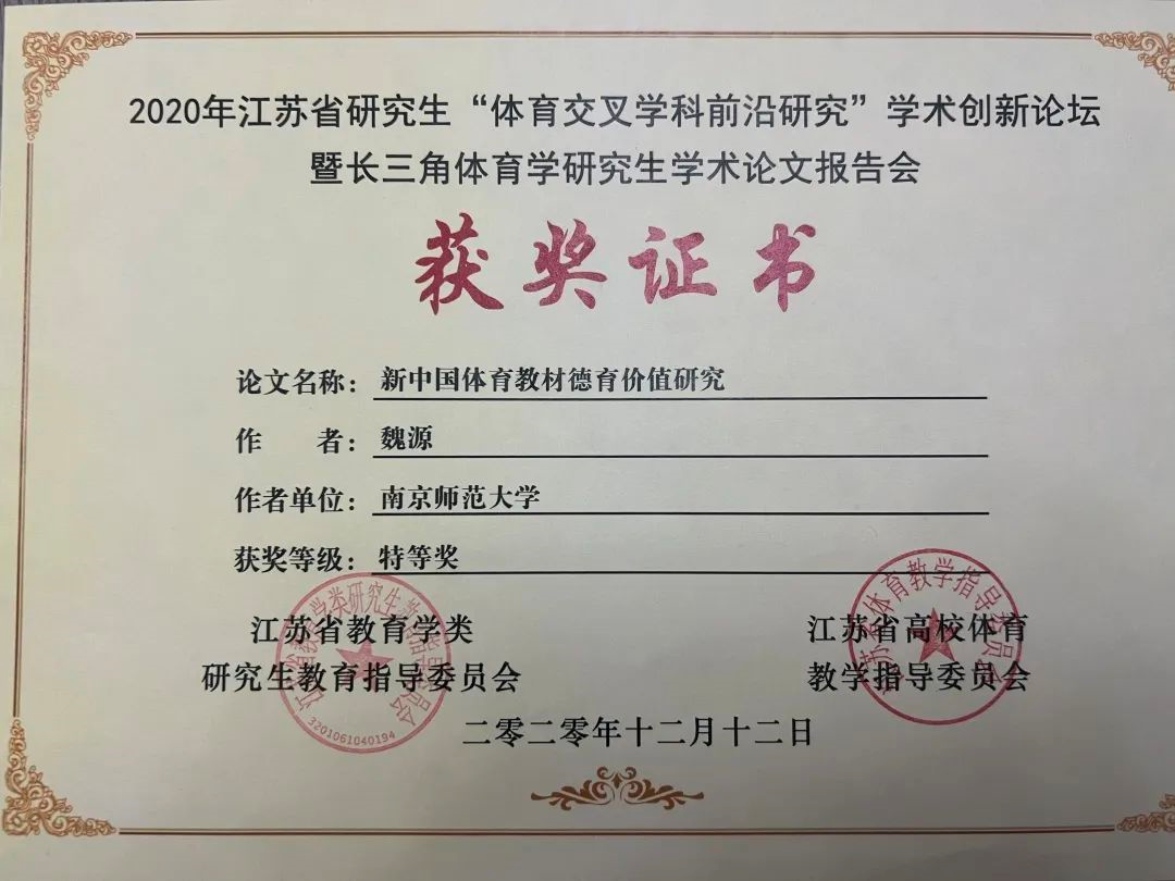 体育科学学院2020级学硕班的魏源