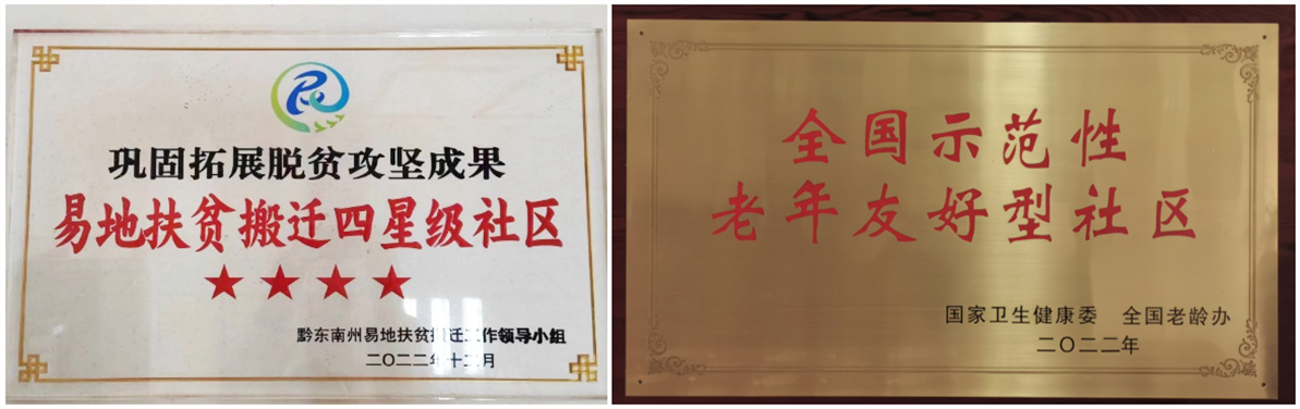 经过校地携手努力,大坪同心社区被评为全国老年友好型社区、贵州省文明单位和贵州省易地扶贫搬迁后续扶持示范点。