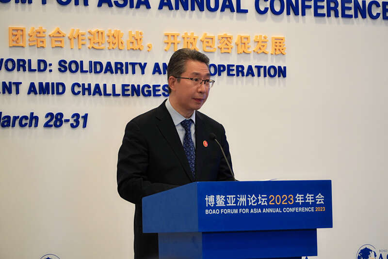 国家知识产权局局长申长雨在博鳌亚洲论坛2023年年会分论坛上演讲。 中青报·中青网记者王林/摄
