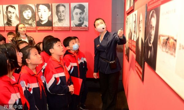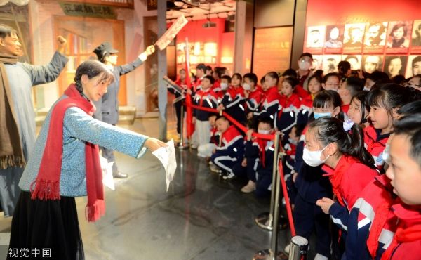 2023年3月30日,兰州八路军办事处纪念馆内,城关区酒泉路小学的学生们在认真聆听讲解员在讲述兰州“八办”的故事。当日,由兰州市城关区教育局、兰州市文化和旅游局共同主办了一场“传承红色基因 凝聚奋进力量——酒泉路小学清明主题活动”。活动中,讲解员通过各项红色教育活动和宣讲红色故事,让同学们切实感受先烈们艰苦奋斗、顽强不屈的革命精神。