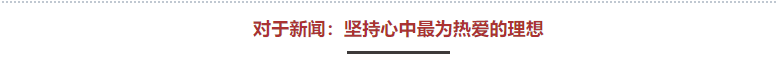 记者这个职业是有无尽魅力的,报道国家的重大新闻事件、见证时代社会的变迁、记录人民生活的改善、聆听时代的脉搏跳动的声音,用新闻事业的建设来推动社会进步和人民幸福是对这份崇高职业最无价的奖赏,为此,她愿付出一切努力。