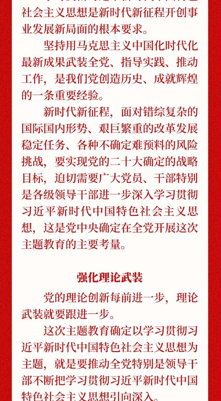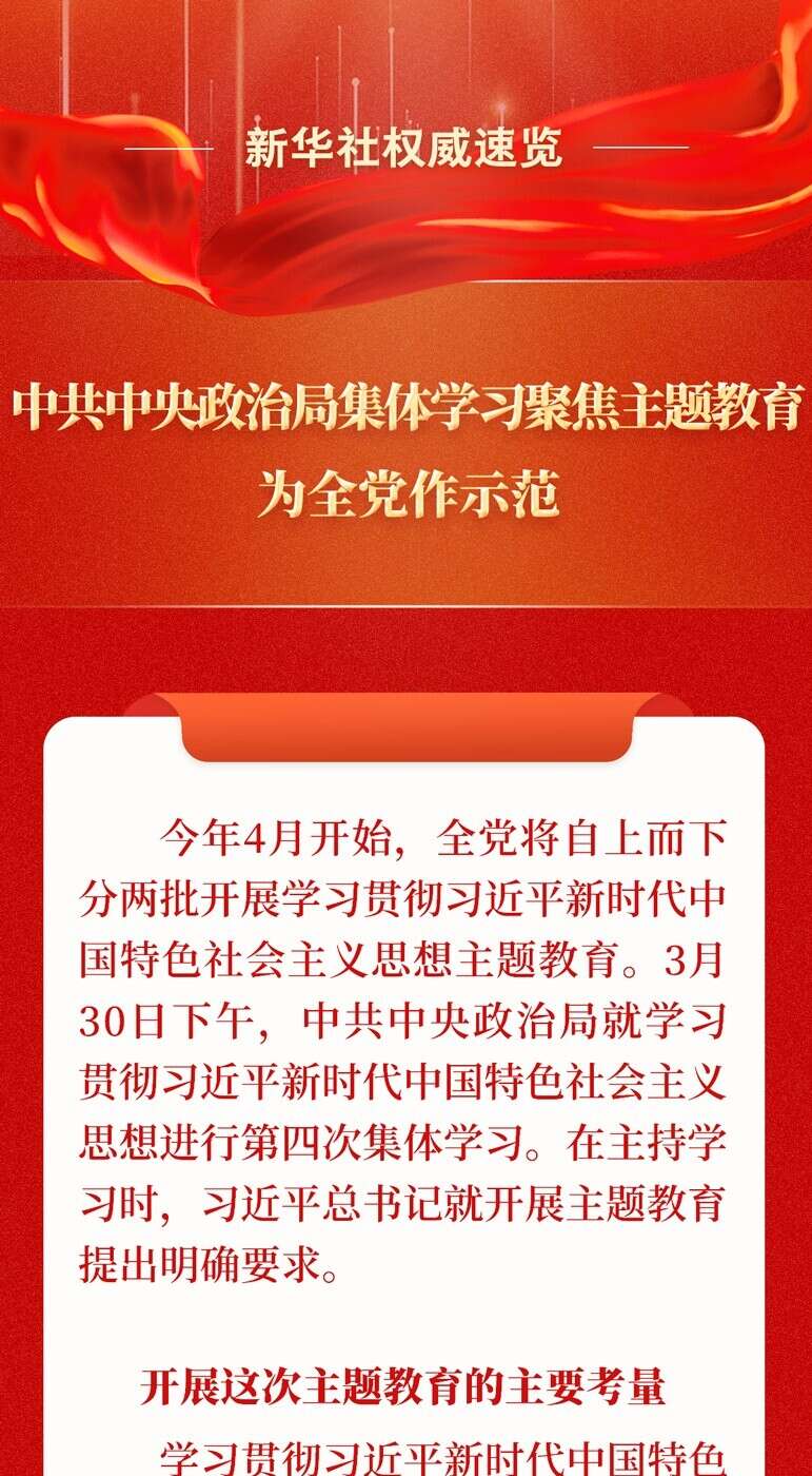 今年4月开始,全党将自上而下分两批开展学习贯彻习近平新时代中国特色社会主义思想主题教育。3月30日下午,中共中央政治局就学习贯彻习近平新时代中国特色社会主义思想进行第四次集体学习。在主持学习时,习近平总书记就开展主题教育提出明确要求。