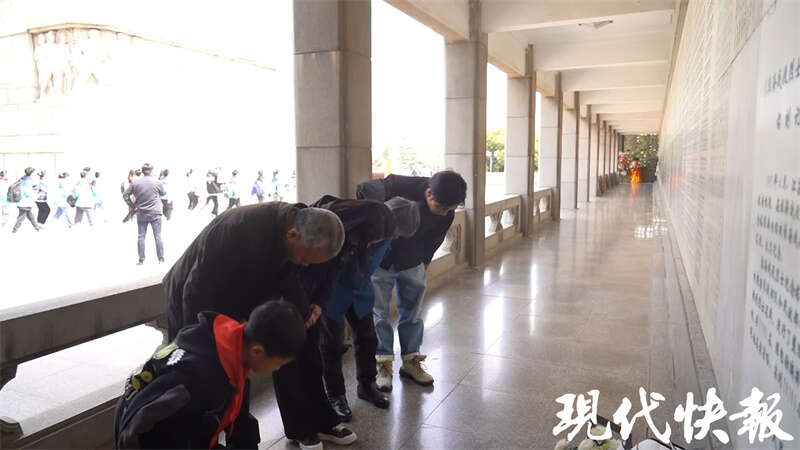 江苏如皋籍淮海战役烈士尤学礼归队了。3月28日上午,距离如皋市400多公里外的徐州市淮海战役烈士纪念塔,青松翠柏掩映之下,一排排烈士英名庄严肃穆。“爷爷,我给您带了家乡的水明楼白酒,敬您一杯。”得知要来祭扫,尤学礼的孙子尤爱国第一时间备下了家乡的白酒。一盏家乡酒,满盏思故人。一遍遍抚摸尤学礼的名字,34岁的尤婷婷泪如雨下。接过工作人员手中的工具,尤婷婷亲手为太爷爷的英名描漆上色。完成后,向着尤学礼的名字,一家四代五口人深深三鞠躬。