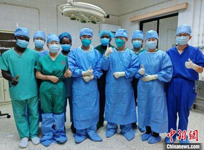手术完成后,中贝医护合影留念。 中国(宁夏)第26批援贝宁医疗队 供图