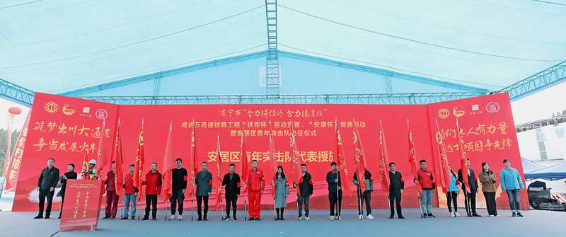 中国青年报客户端讯(中青报·中青网记者 王鑫昕)3月28日,中建八局成达万高速铁路安居标段项目现场,四川省遂宁市安居区举行了青年突击队集体出征仪式。