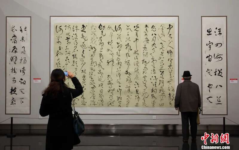 参观者在观看以李白诗文为内容的草书作品。泱波 摄