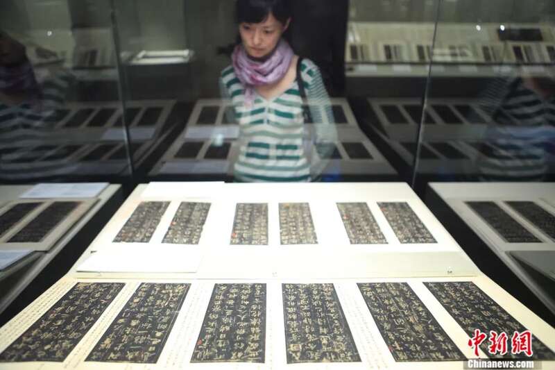 “兰亭特展”及“兰亭珍拓展”在北京故宫博物院展出,一名参观者在“兰亭拓本”中流连忘返。韦亮 摄