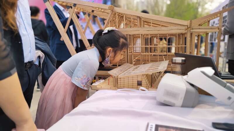 小朋友在建筑模型前驻足欣赏。 天津大学供图