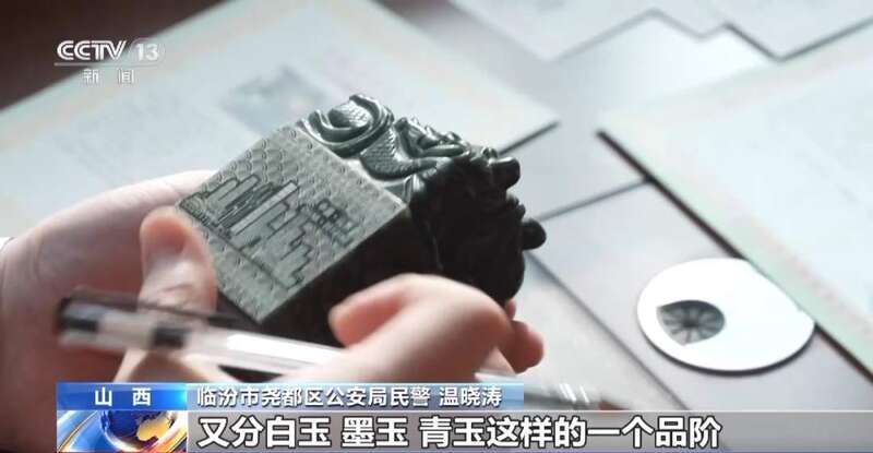 山西省临汾市尧都区公安局民警 温晓涛:玉玺的种类特别多,而且这个单个的种类里面又分为白玉、墨玉、青玉这样一个品阶,对外的价值就是两千到五万不等,但是实际真实的材料、质地就是玉粉、合成材料或者是玉石的边角料。