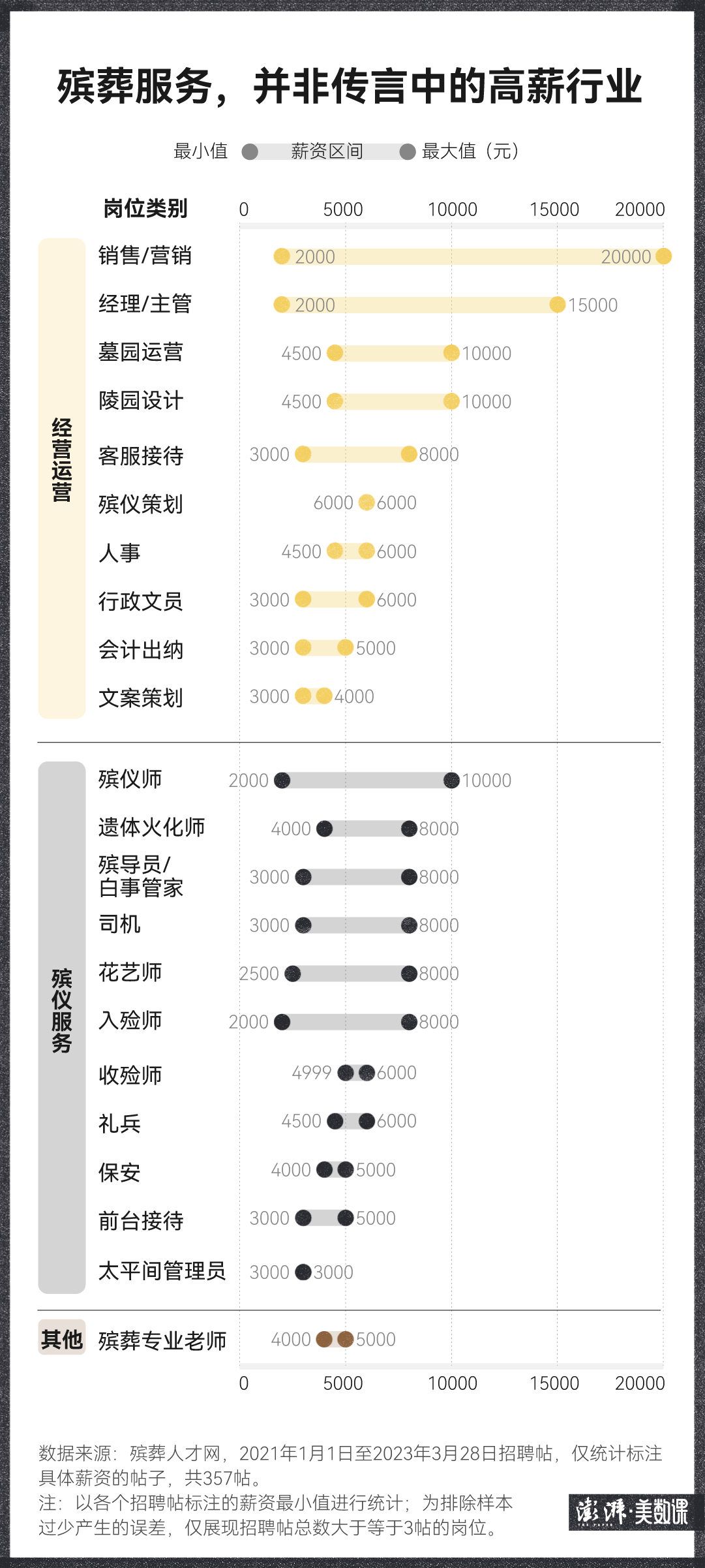 事实上,殡仪服务行业的普遍薪资区间在3000元至8000元。像是经常被推上高薪神话的“遗体火化师”和负责遗体收敛搬运的“收殓师”,实际的平均招聘薪酬分别仅为6000元和5333元。