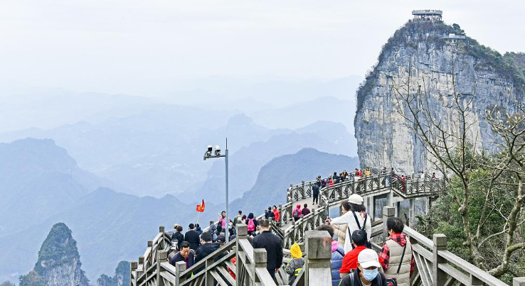 2022年12月3日,湖南张家界,游客在天门山景区游玩。视觉中国 资料图