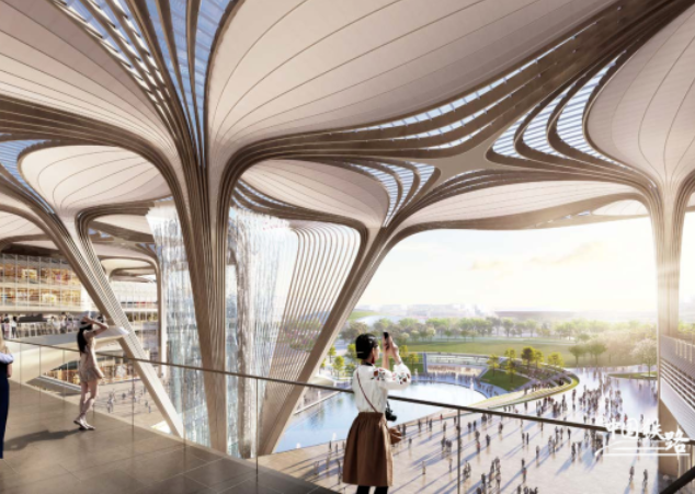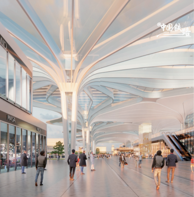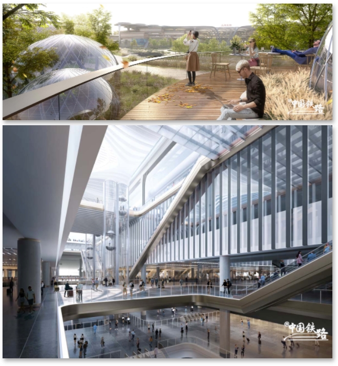 上海东站的西立面是车站建筑最主要的形象展示面,让人伫立在绿色自然环境中,充分感受生态城市的美好。