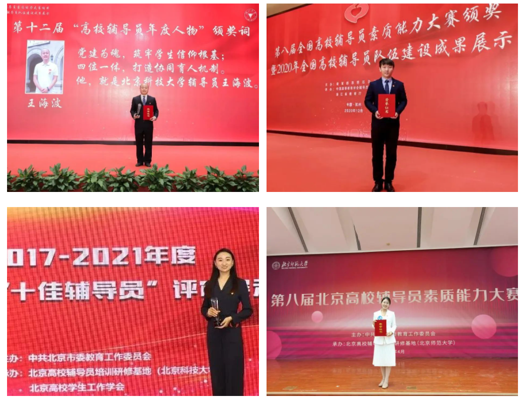 近五年,学校多名辅导员获评全国高校辅导员年度人物、北京市十佳辅导员、辅导员素质能力大赛奖项等荣誉,辅导员队伍建设成效显著,相关工作经验刊登在教育部官网《一线采风》栏目。