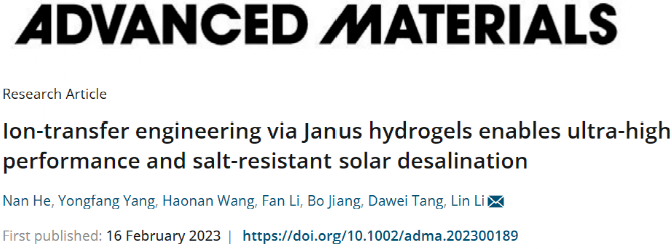 近日,大连理工大学能源与动力学院极端条件热物理团队(唐大伟教授、李林副教授等人)在水能利用领域取得重要进展,成果一周内连续发表在国际顶级期刊《先进材料》(Advanced Materials),其中一篇入选期刊封面,大连理工大学均为唯一完成单位。