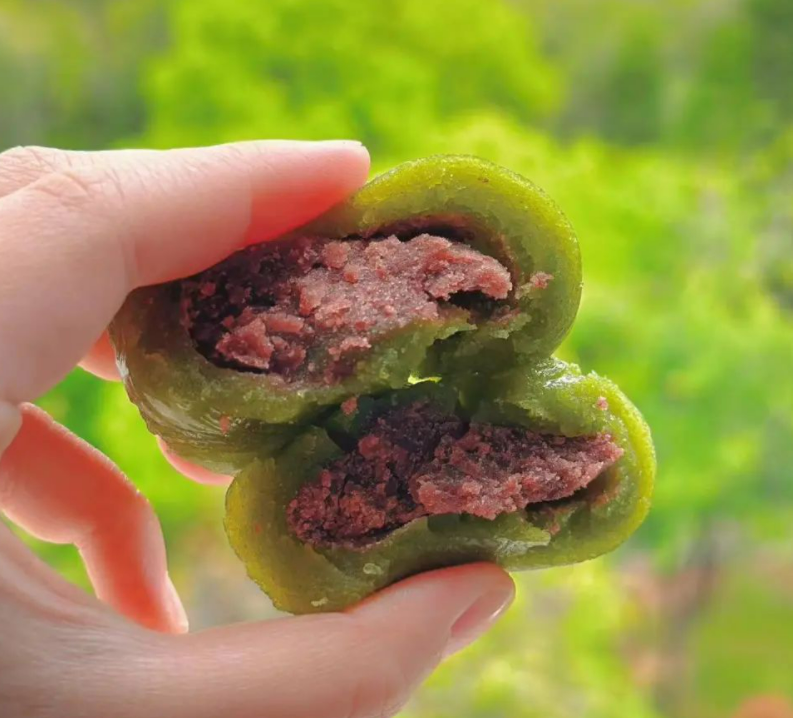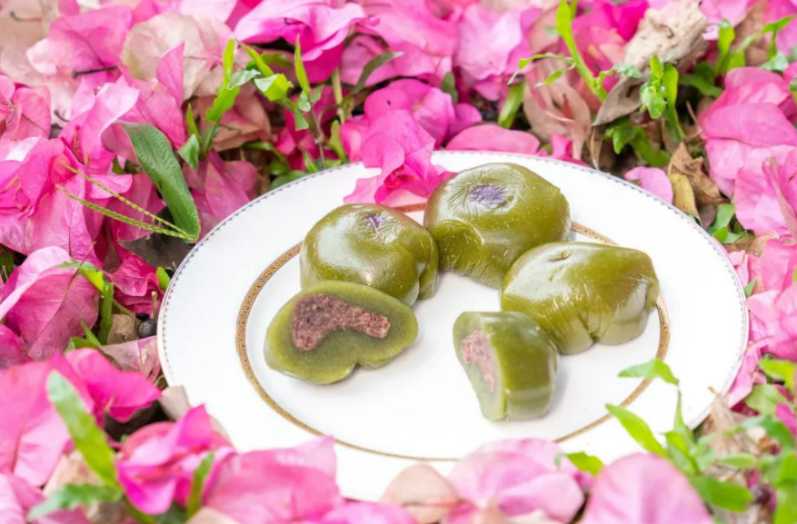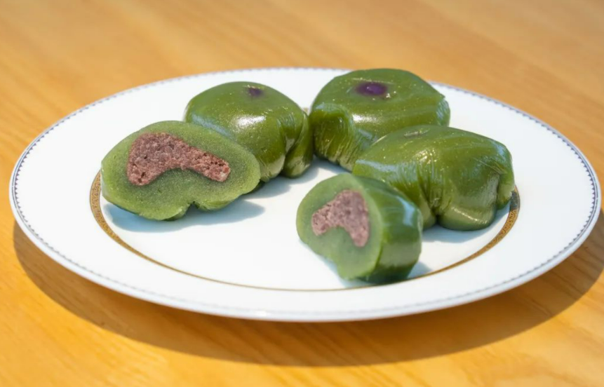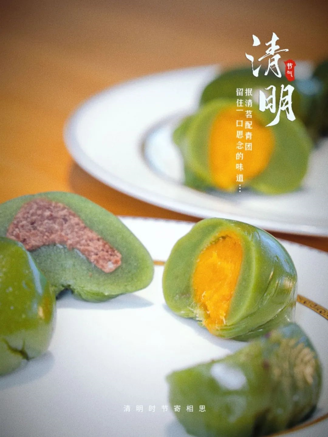 清代文学、美食家袁枚的《随园食单》中,对青团的制作有翔实记载:“捣青草为汁,和粉作团,色如碧玉。”青团碧青油绿,糯韧绵软,甘甜细腻,清香爽口,从色彩到口感都有着春天的气味,是清明与寒食节时南方民间的一道传统点心。